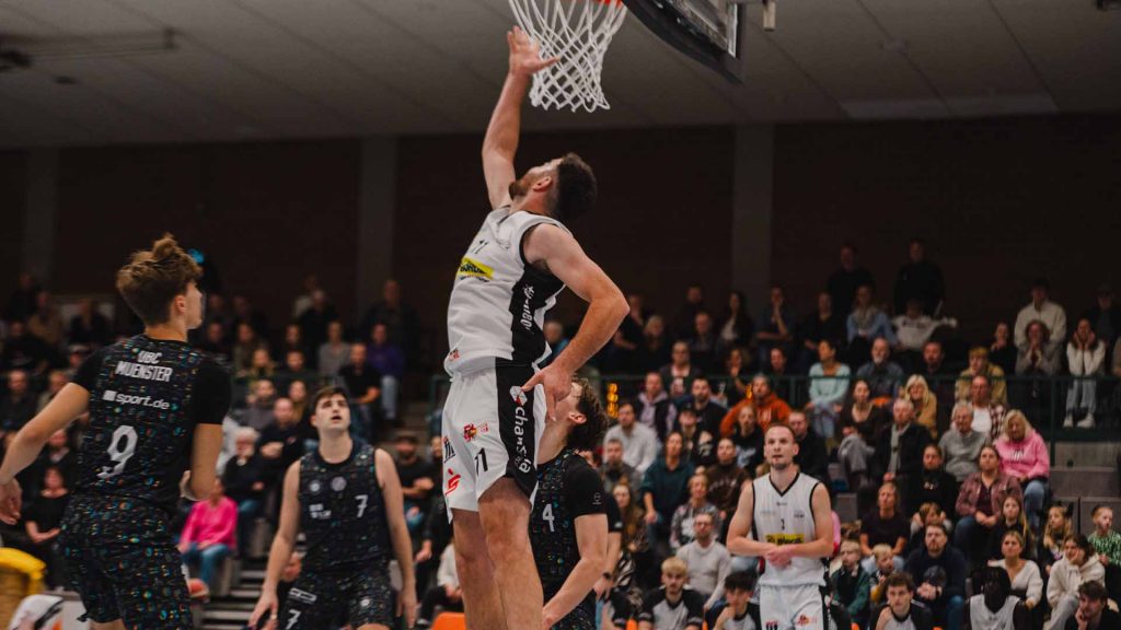 Spielverlauf: 1,1 Sekunden zeigte die Anzeigetafel in der Halle Ost an, die Börgel Ballers führten 62:61, Münster hatte Einwurf, nahm eine Auszeit und designte das perfekte Play. Langer Einwurf auf Lukas Ehrich, der traf den irren Dreier per Buzzer zum 64:62, der Rest war Jubel pur auf Münsteraner Seite und Enttäuschung pur auf Ibbenbürener Seite. Es war ein sehr umkämpftes Derby mit vielen Läufen auf beiden Seiten, bei dem die Gastgeber wieder einmal offensiv große Mühe hatten. 20 Ballverluste, dazu nur 25 Prozent Dreierquote und das in heimischer Halle, schlichtweg zu wenig. Zwischenzeitlich hatte der TVI die Partie eigentlich unter Kontrolle, führte nach der Pause mit 41:30 und im Schlussviertel mit 57:50, doch immer wieder schlichen sich Nachlässigkeiten ein.