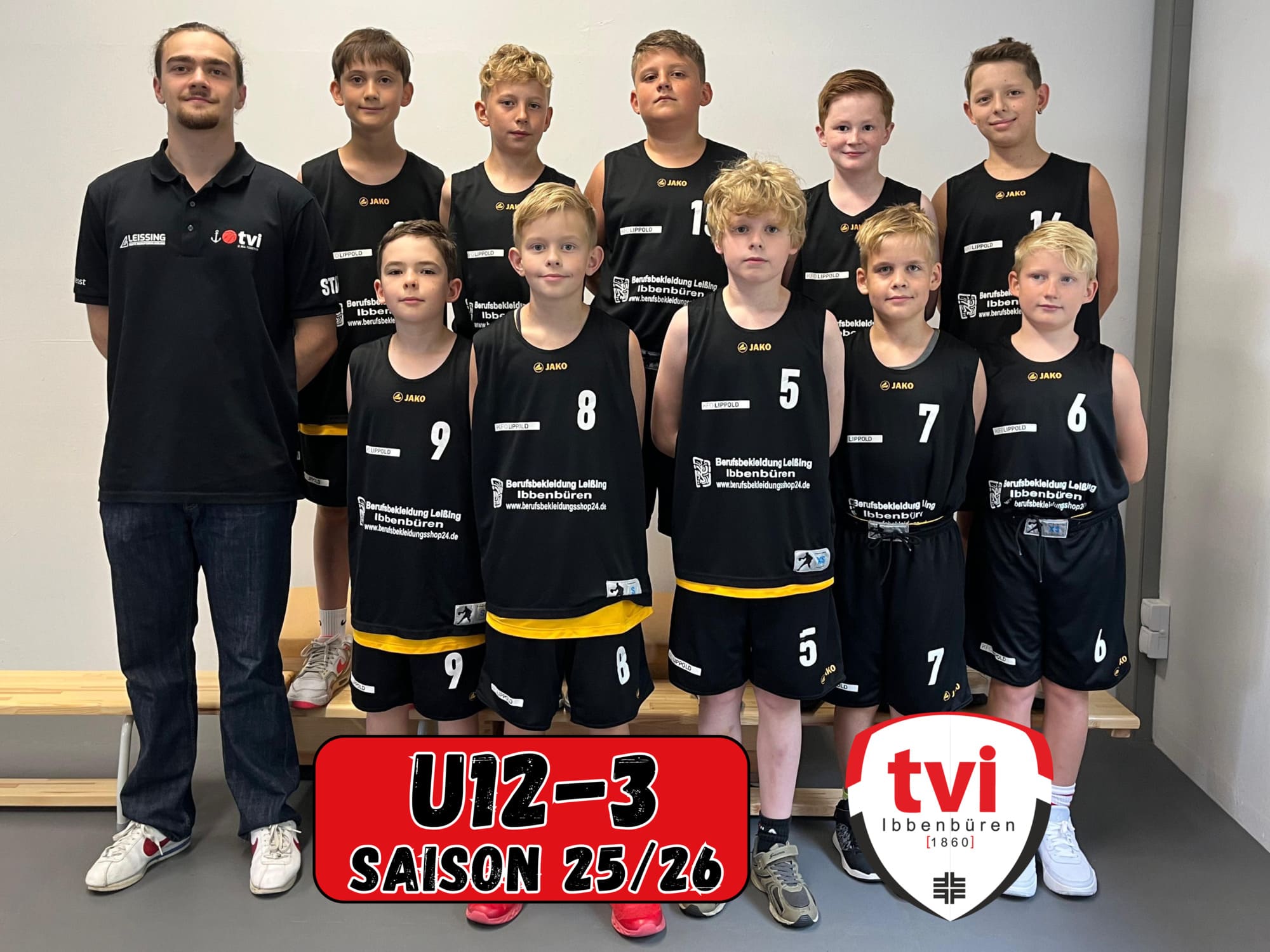 Für die U12-3 konnte die Abteilungsleitung erfreulicherweise mit Helge Stenneken und Eduard Alimbayew zwei neue Coaches gewinnen. Die U12-3 wird in der kommenden Saison in der Kreisliga Münster an den Start gehen und besteht aus einer bunten Mischung aus Anfängern und Spielern, die in der letzten Saison bereits in der Kreisliga angetreten sind. Die U12-3 hat in der Kreisliga eine schwere Staffel erwischt, möchte dies aber als Herausforderung sehen und die Saison mit Spaß bestreiten.